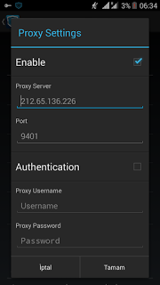 Droidvpn için Vodafone APN ayarını kaydettikten sonra Droidvpn'yi çalıştırın, Uygulamayı açın, üst bölümden ayarlara girin, ilk olarak "Connection Protocol" ayarına tıklayarak "TCP" olarak değiştirin. Daha sonra "Proxy Settings" ayarına tıklayarak "Enable"ye tik atın.